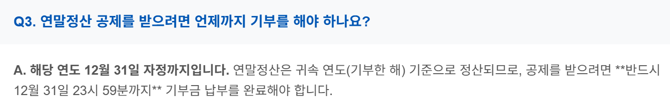 - 원칙 2. 지출 연도 : 기부한 날짜가 속한 연도의 세액공제로만 인정