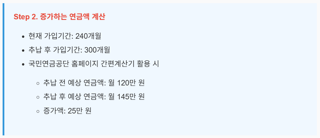 2025년 국민연금 추납시 연금 증가액 계산 방법