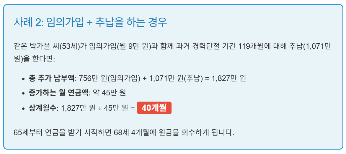 - 월 20만 원 × 50개월 추납 (비권장)