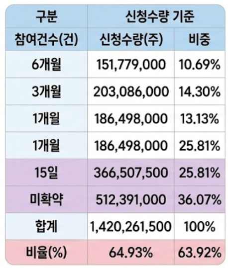3. 상장일 유통 물량 및 의무보유확약