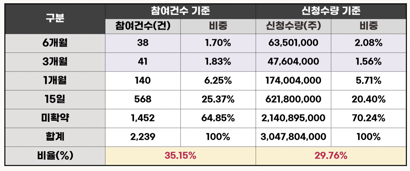 의무보유 확약 비율