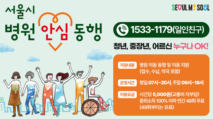 (단, 서울시 소재 병원에 한하며, 버스/지하철.택시등 대중교통으로만 동행가능)