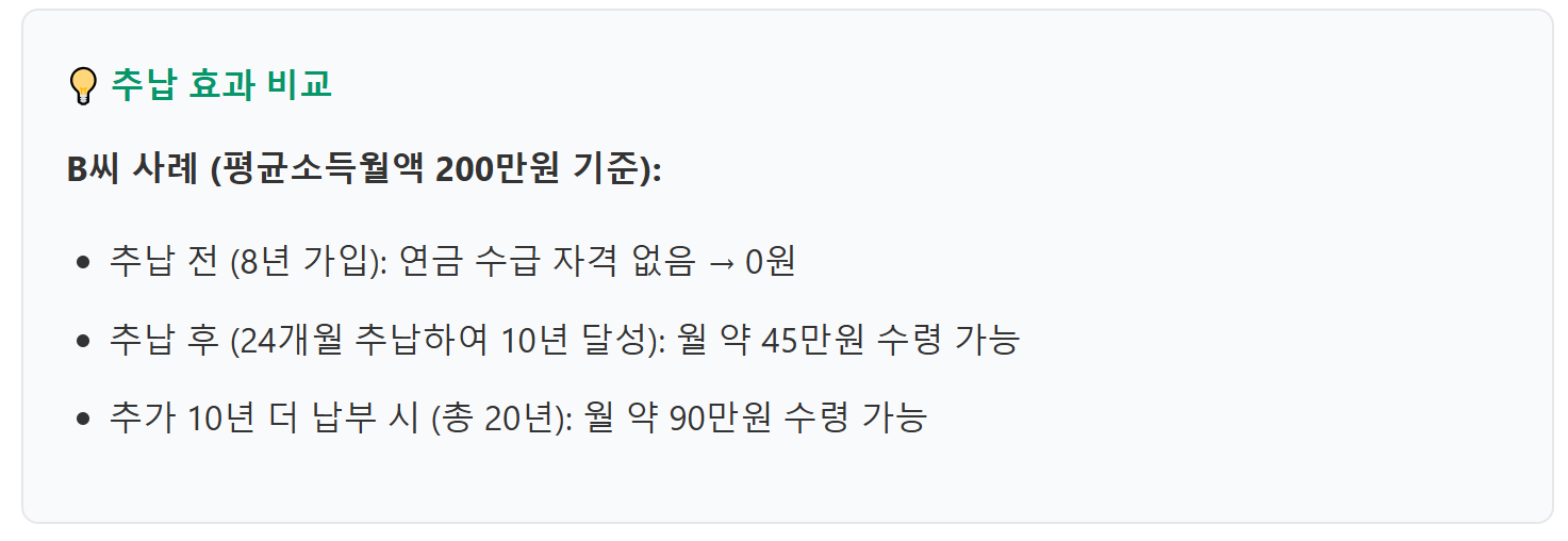 - 기초연금 영향 검토: 추납으로 인한 기초연금 수급 자격 변동 확인