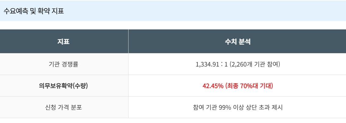 - 단기 확약의 의미: 기관 확약의 대부분이 15일에 몰려 있습니다. 이는 기관들도 장기 가치보다는 상장 직후의 수급 펌핑을 노리고 있다는 강력한 신호