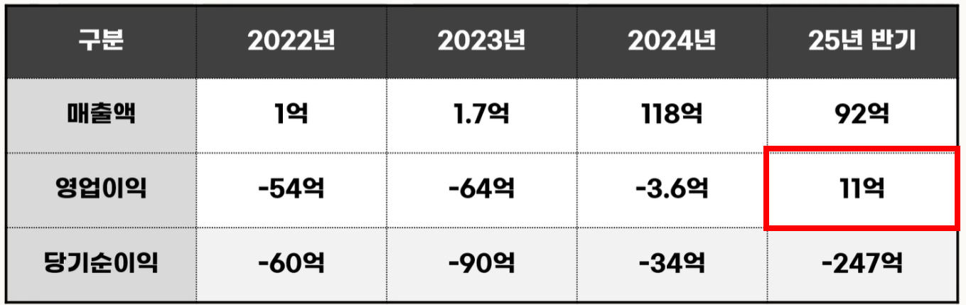 아래 표에서 볼 수 있듯이 2023년과 2024년 사이에 비약적인 매출액 증가를 보였고, 2025년 반기 매출액을 보면, 이미 2024년보다 높은 매출을 달성했습니다.