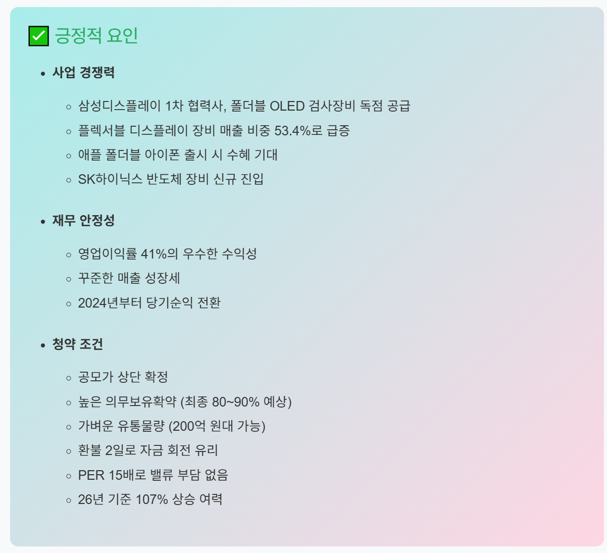 특히 주목할 점은 2026년 하반기로 예상되는 애플의 폴더블 아이폰 출시입니다. 시장에서는 삼성디스플레이가 해당 패널을 공급할 것으로 전망하고 있어, 이노테크의 검사 장비 수요도 자연스럽게 증가할 것으로 예상하고 있습니다.