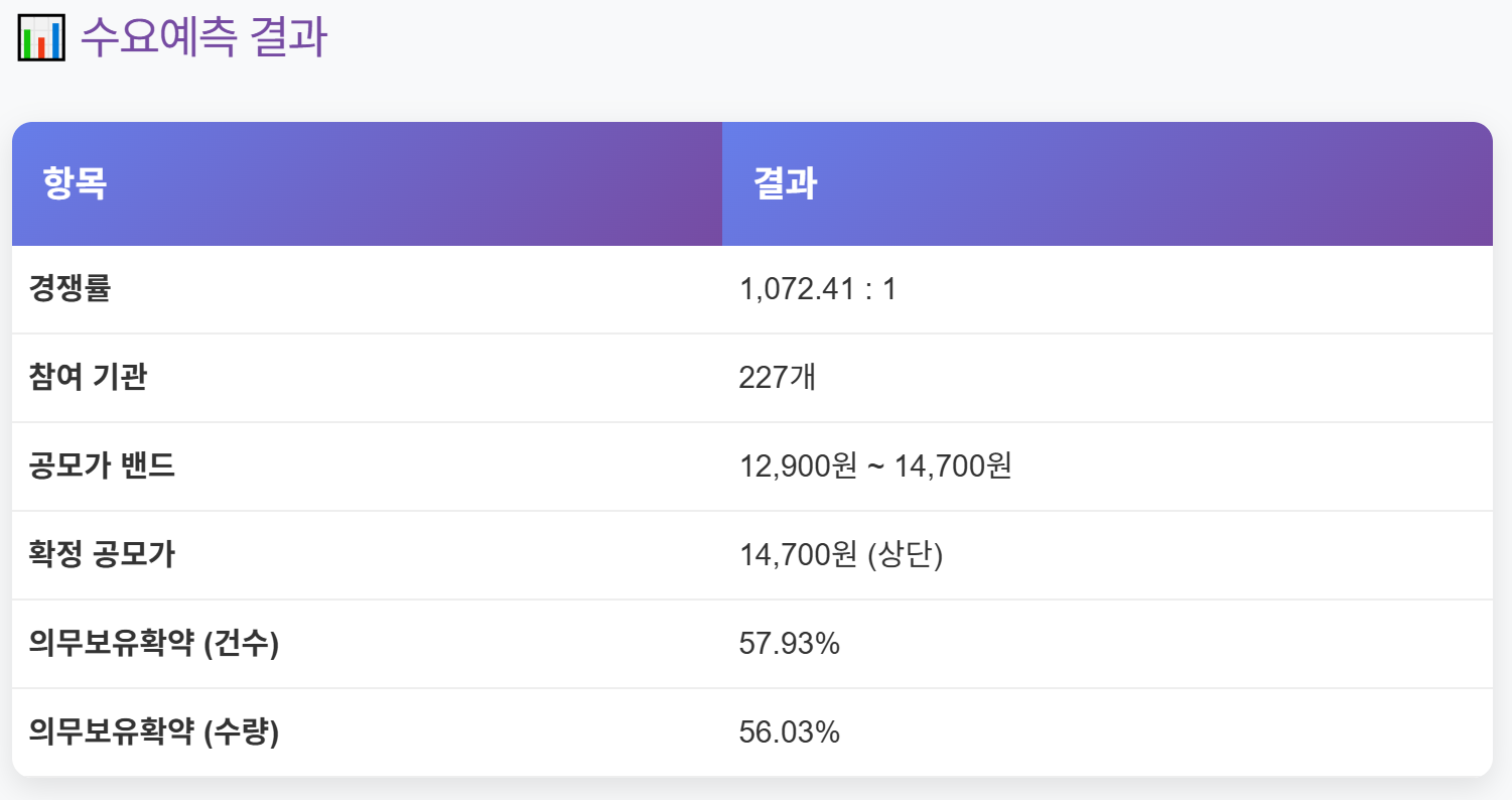 3️⃣ 공모 조건 및 수요예측 결과