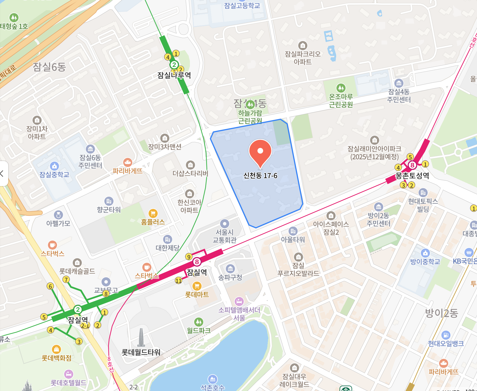 - 위치: 서울특별시 송파구 신천동 17-6 일대