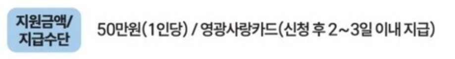 ▶ 지급금액 : 1인당 50만원 (미성년자는 세대주가 대신 신청 및 수령)