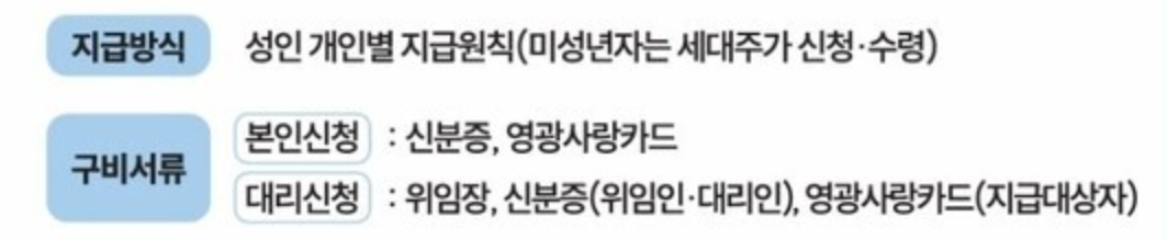 - 본인 신청: 신분증, 영광사랑카드