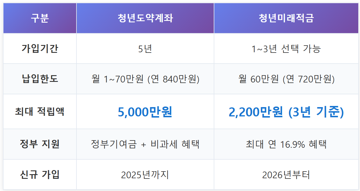 1. 청년도약계좌 vs 청년미래적금 비교