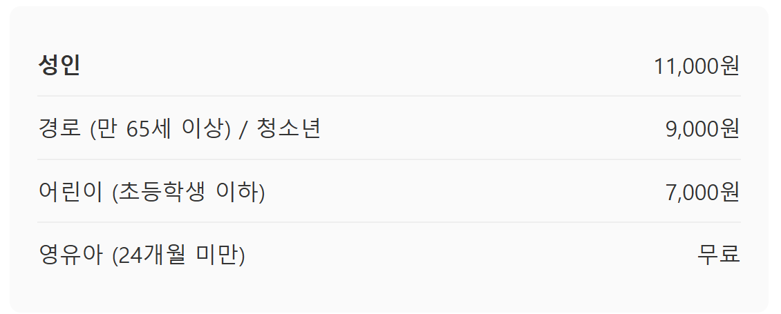 운영시간은 오전 9시부터 오후 6시까지이며, 겨울철에는 오후 5시에 한시간 일찍 끝납니다. 월요일은 정기휴무이니 방문 전 확인하시고, LG유플러스 멤버십이나 국가유공자, 장애인, 광주시민 등을 위한 할인 혜택도 마련되어 있으나, 가을 단풍 시즌 등 특정 기간에는 할인이 제한될 수 있으니 예매 시 체크해 보시기 바랍니다.