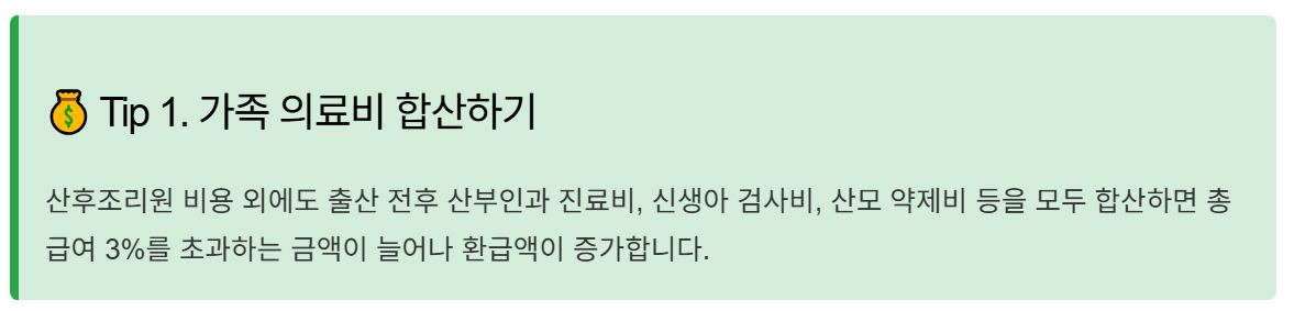 - 의료비 세액공제 항목에서 산후조리원 비용 확인