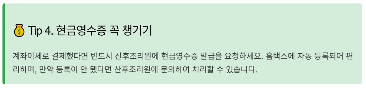 - 조회되지 않으면 산후조리원에 영수증 발급 요청