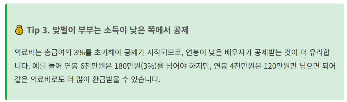 📊 사례 1: 연봉 5천만 원, 산후조리원 300만 원 지출 + 기타의료비 0원