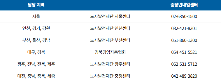 혹시 궁금하신 부분이 있으시면, 각 지역별 중장년내일센터에 문의하시면 더 정확한 정보를 얻으실 수 있습니다.