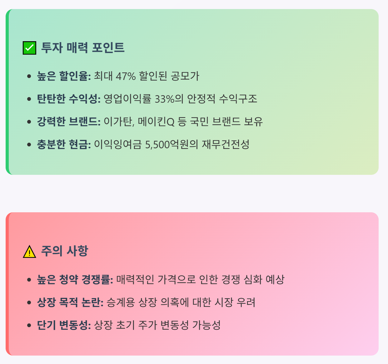 - 주관사 부담: IPO 업계에서는 상장 전 최대주주 거액 배당 종목을 부담스러워함