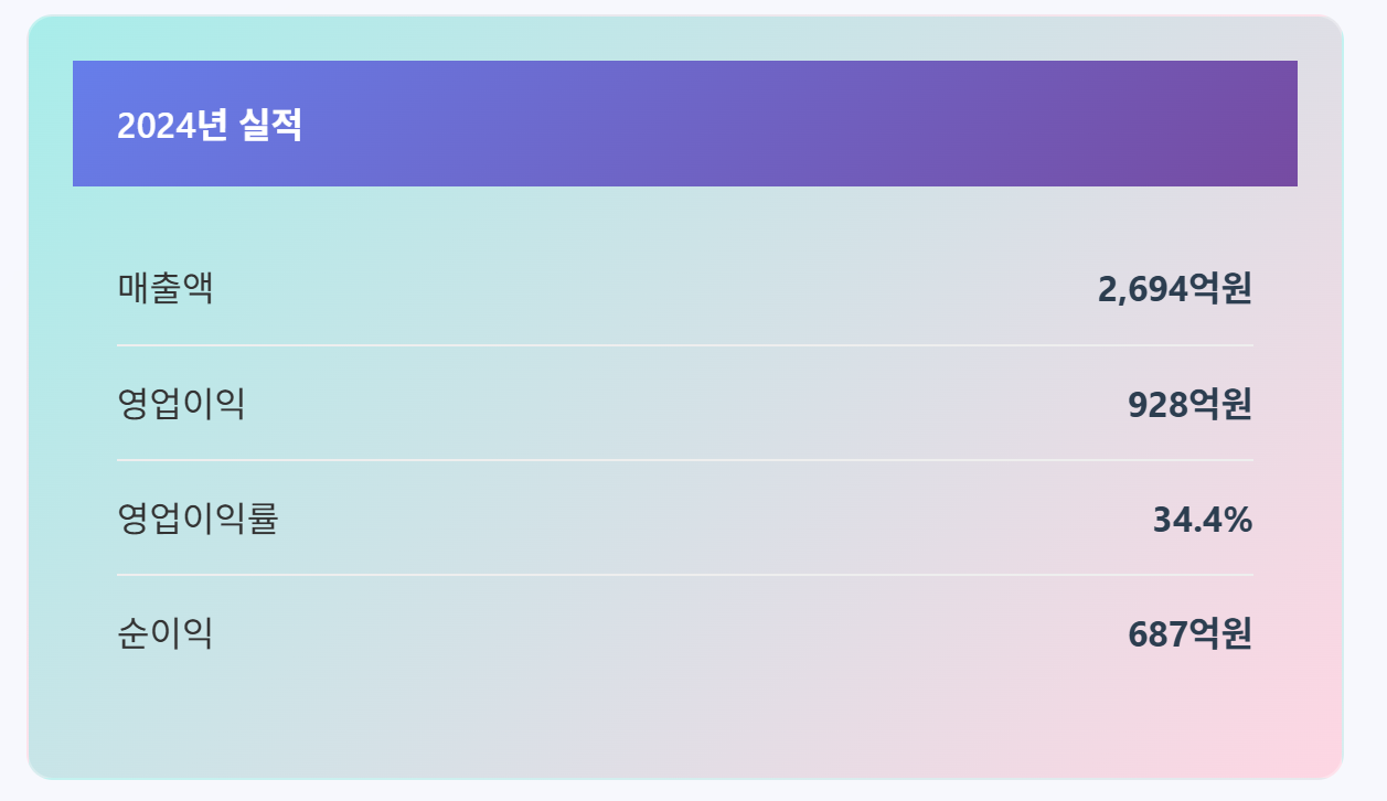 - 영업이익: 928억 원 (영업이익률 34.4%)
