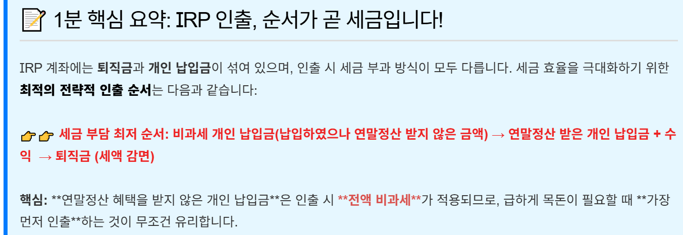 🔑 IRP 인출 자금의 세 가지 종류와 세금 부과 기준