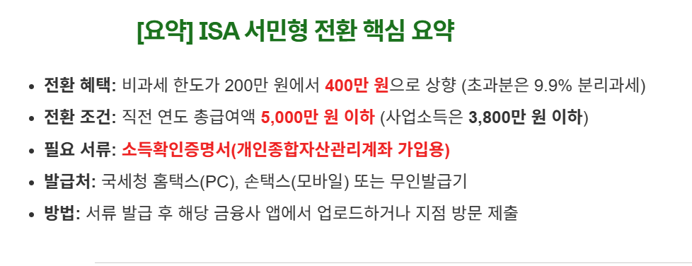 1. 왜 ISA 서민형으로 전환해야 할까요?